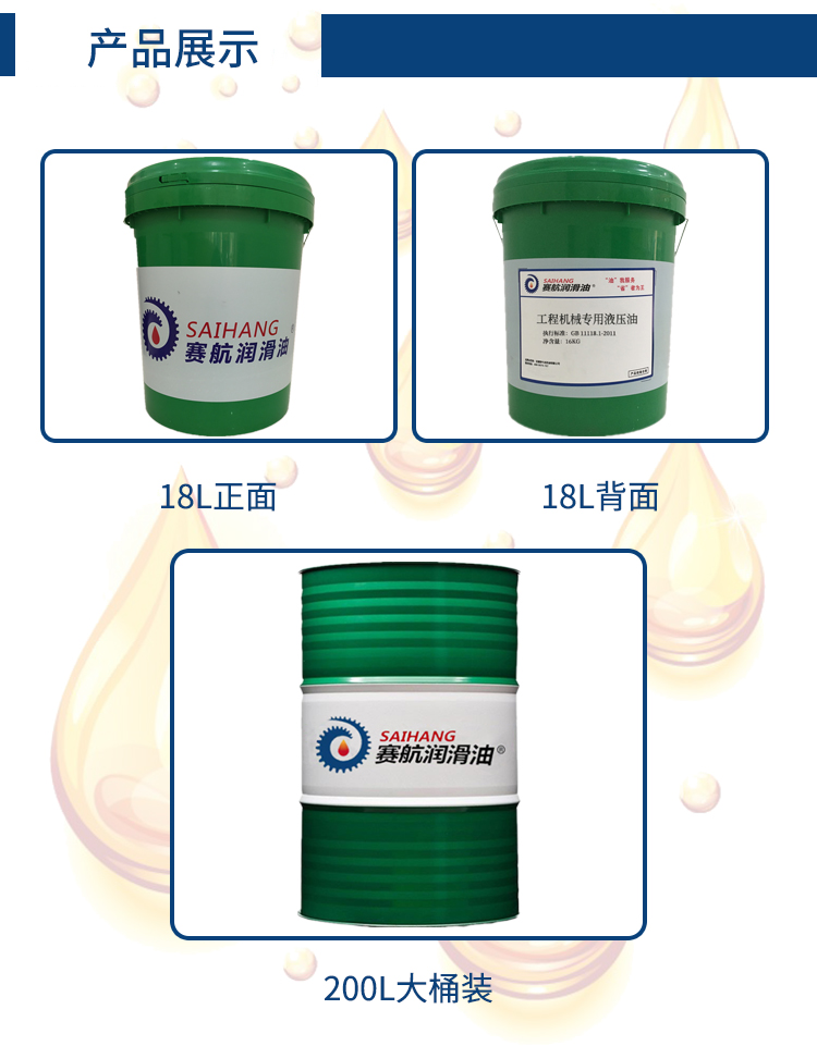 优质抗磨液压油,适用于各类工程机械及移动式液压传动系统,该油含特殊添加剂,防止油质氧化,减少金属磨损及泡沫形成,有良好的防锈、抗氧化和水分离性能,并可延长设备寿命。